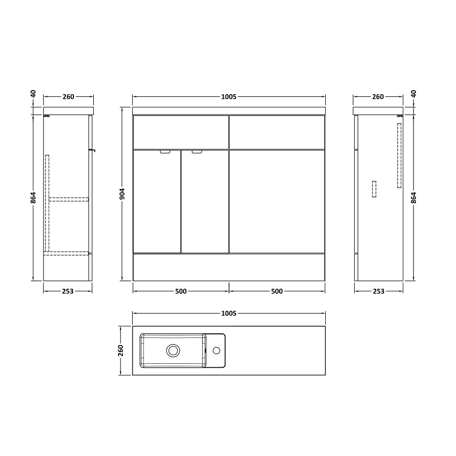 The set consists of a 500mm basin unit and a 500mm WC unit. The external sides of the units are matched to your door choice.