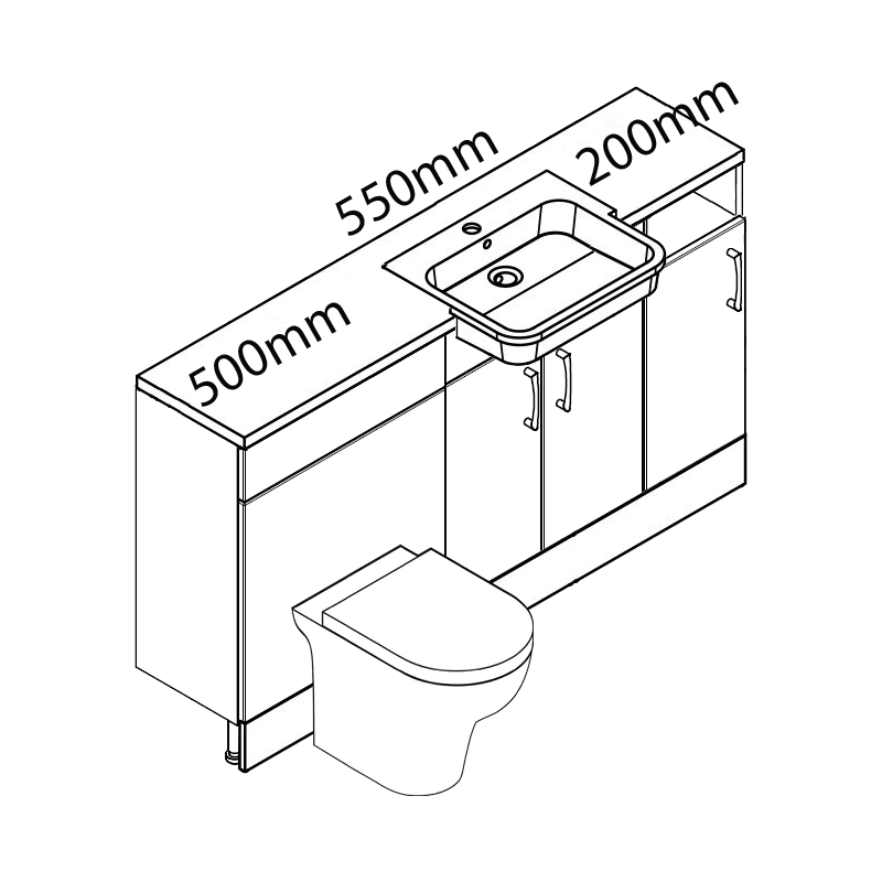 These units can be put into any order you like and not just as per the picture. You get the option of worktops, handles, toilet, basin and cistern.
