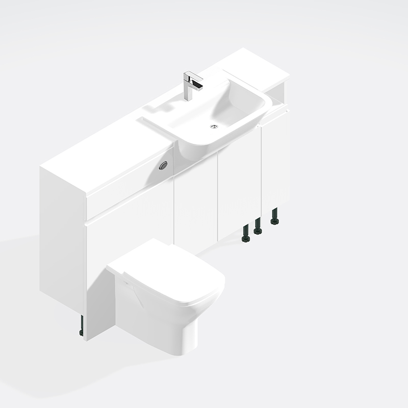 These units can be put into any order you like and not just as per the picture. You get the option of worktops, handles, toilet, basin and cistern.