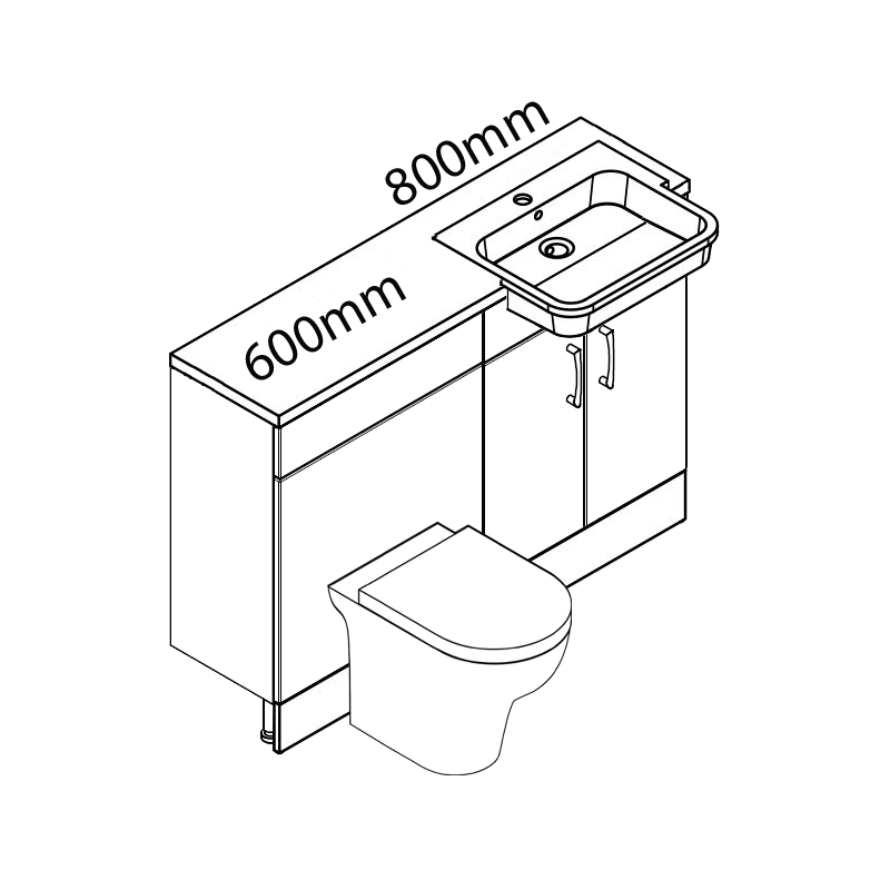 These units can be put into any order you like and not just as per the picture. You get the option of worktops, handles, toilet, basin and cistern.