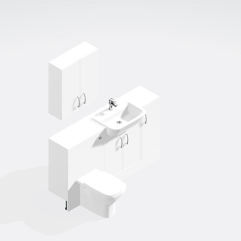 These units can be put into any order you like and not just as per the picture. You get the option of worktops, handles, toilet, basin and cistern.