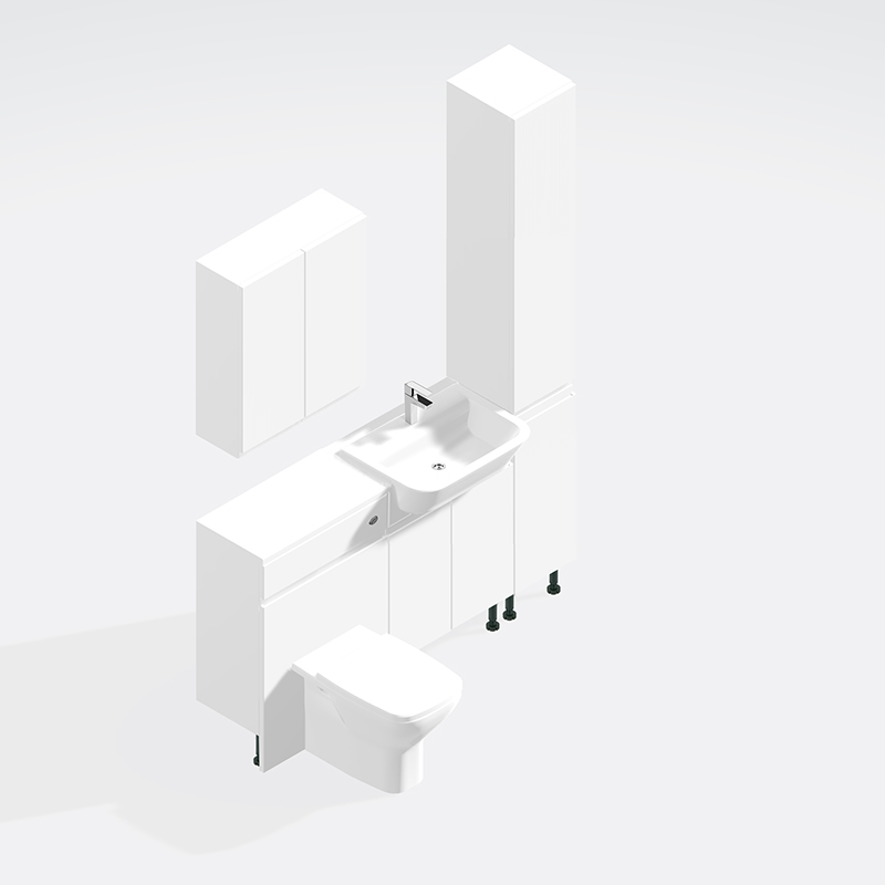 These units can be put into any order you like and not just as per the picture. You get the option of worktops, handles, toilet, basin and cistern.