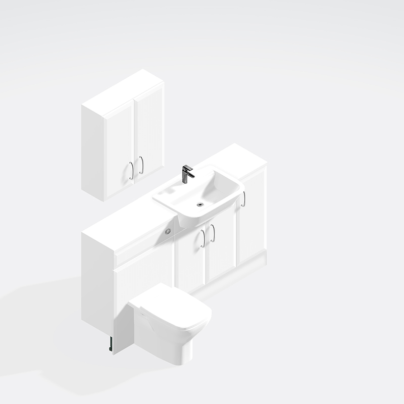 These units can be put into any order you like and not just as per the picture. You get the option of worktops, handles, toilet, basin and cistern.