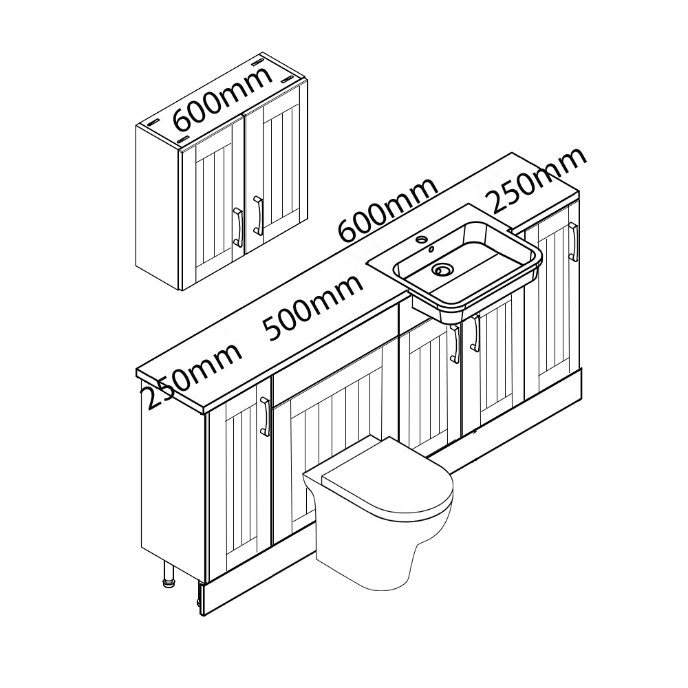 These units can be put into any order you like and not just as per the picture. You get the option of worktops, handles, toilet, basin and cistern.