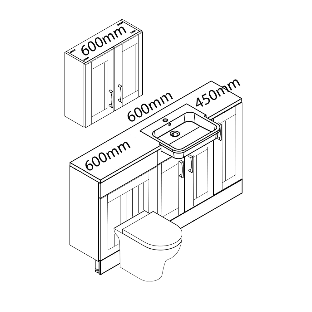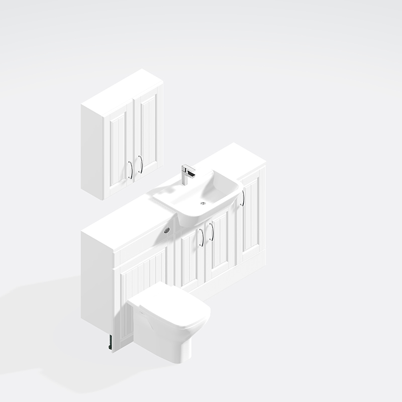 These units can be put into any order you like and not just as per the picture. You get the option of worktops, handles, toilet, basin and cistern.