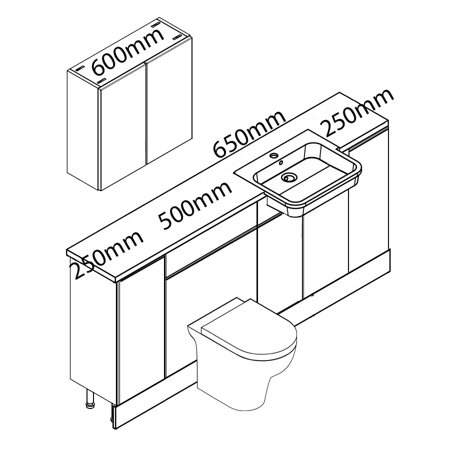 These units can be put into any order you like and not just as per the picture. You get the option of worktops, handles, toilet, basin and cistern.