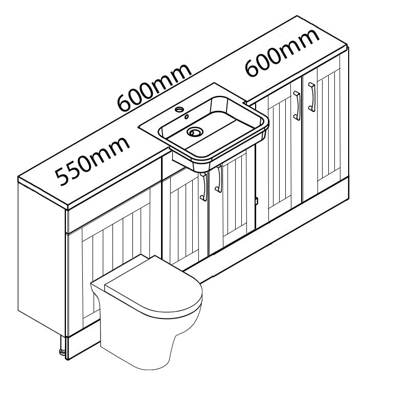 These units can be put into any order you like and not just as per the picture. You get the option of worktops, handles, toilet, basin and cistern.