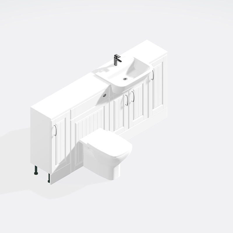 These units can be put into any order you like and not just as per the picture. You get the option of worktops, handles, toilet, basin and cistern.