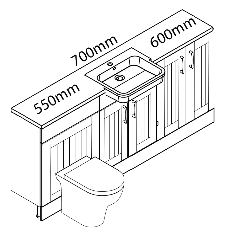 These units can be put into any order you like and not just as per the picture. You get the option of worktops, handles, toilet, basin and cistern.