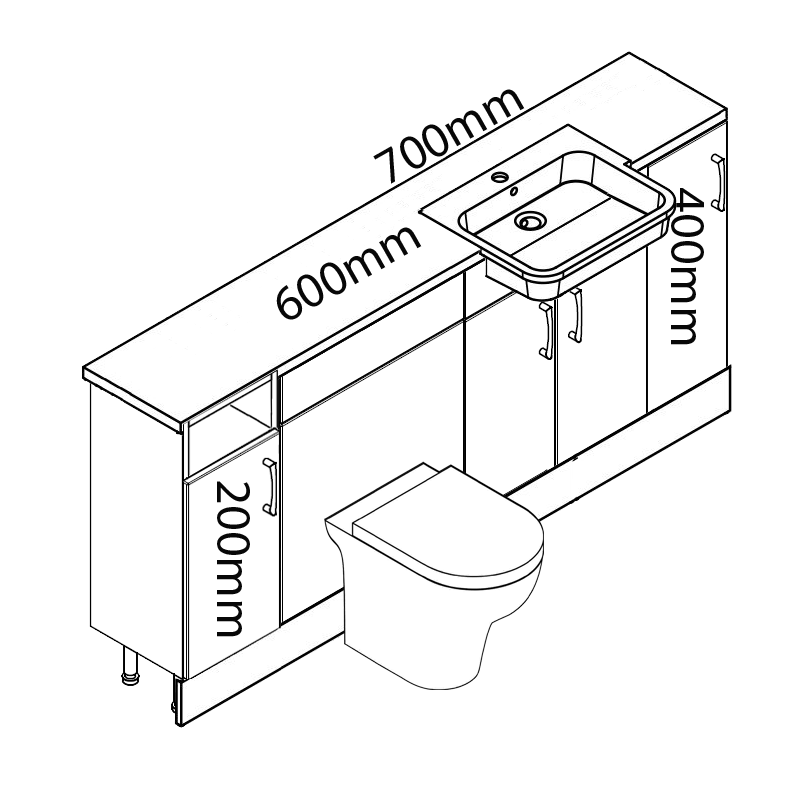 These units can be put into any order you like and not just as per the picture. You get the option of worktops, handles, toilet, basin and cistern.