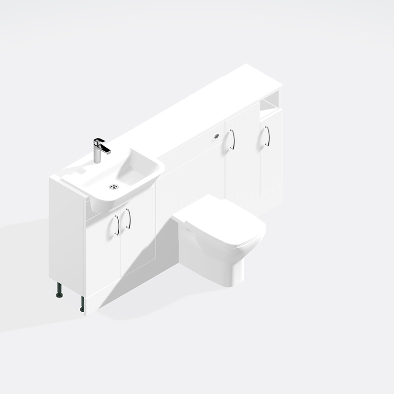 These units can be put into any order you like and not just as per the picture. You get the option of worktops, handles, toilet, basin and cistern.
