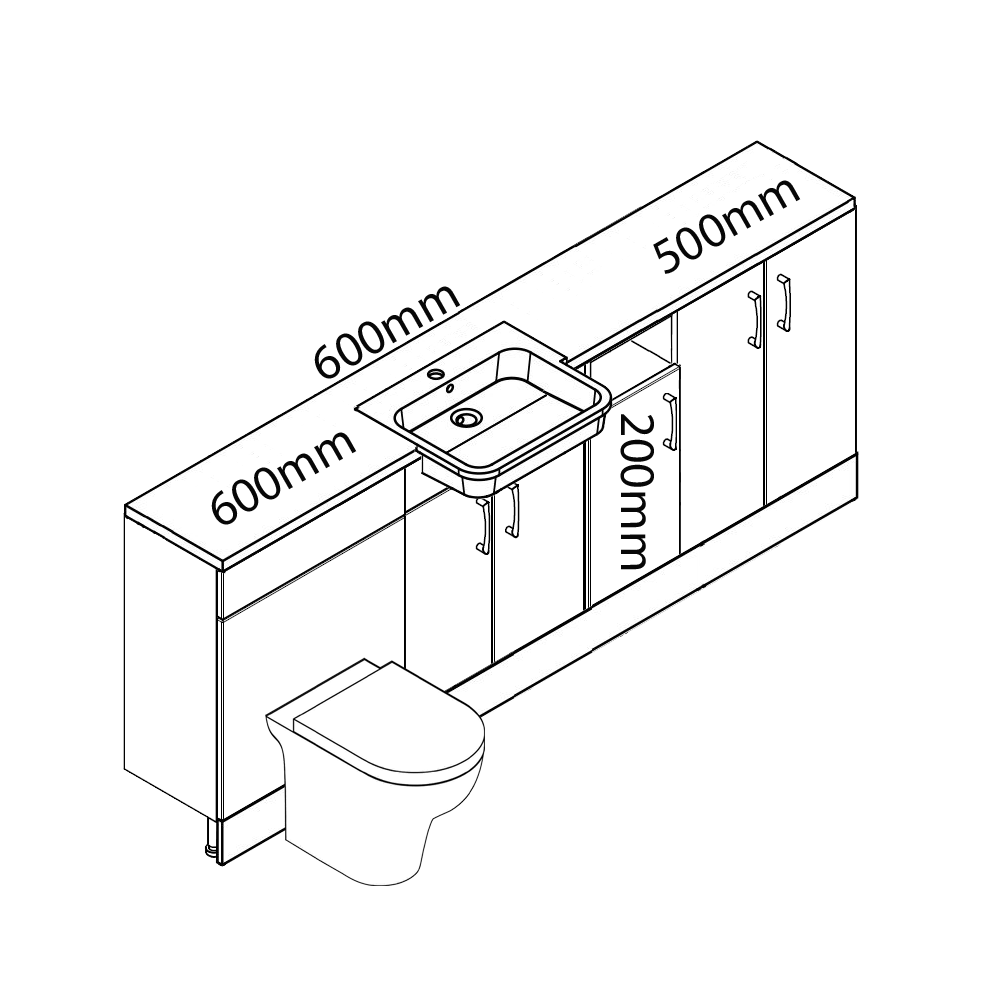 These units can be put into any order you like and not just as per the picture. You get the option of worktops, handles, toilet, basin and cistern.
