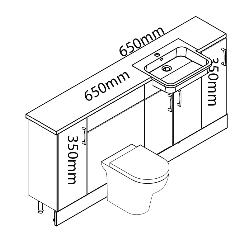 These units can be put into any order you like and not just as per the picture. You get the option of worktops, handles, toilet, basin and cistern.