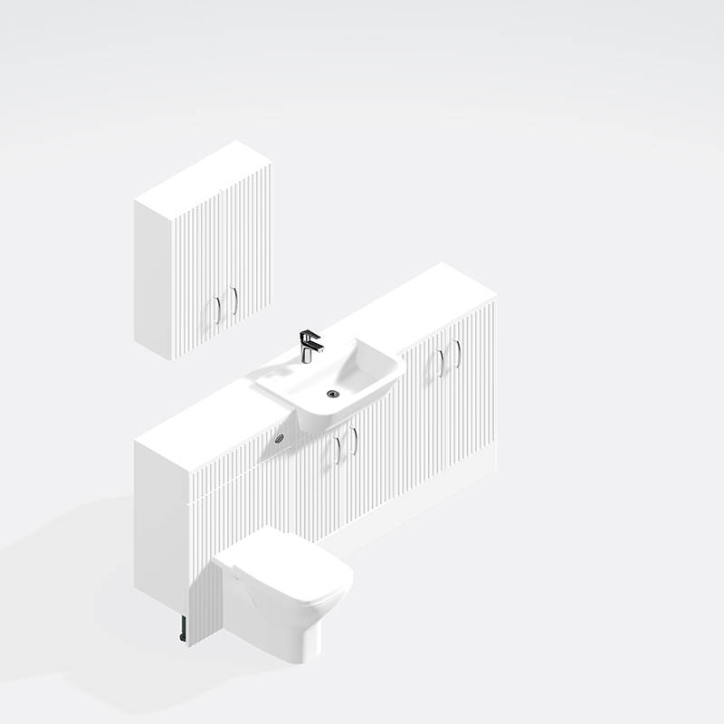 These units can be put into any order you like and not just as per the picture. You get the option of worktops, handles, toilet, basin and cistern.