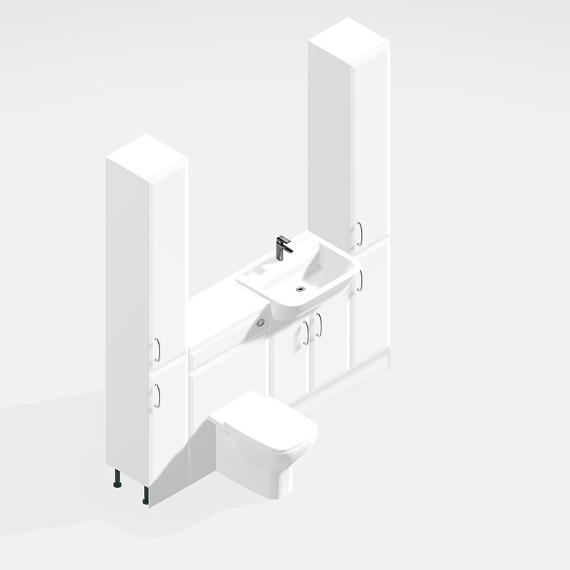 These units can be put into any order you like and not just as per the picture. You get the option of worktops, handles, toilet, basin and cistern.