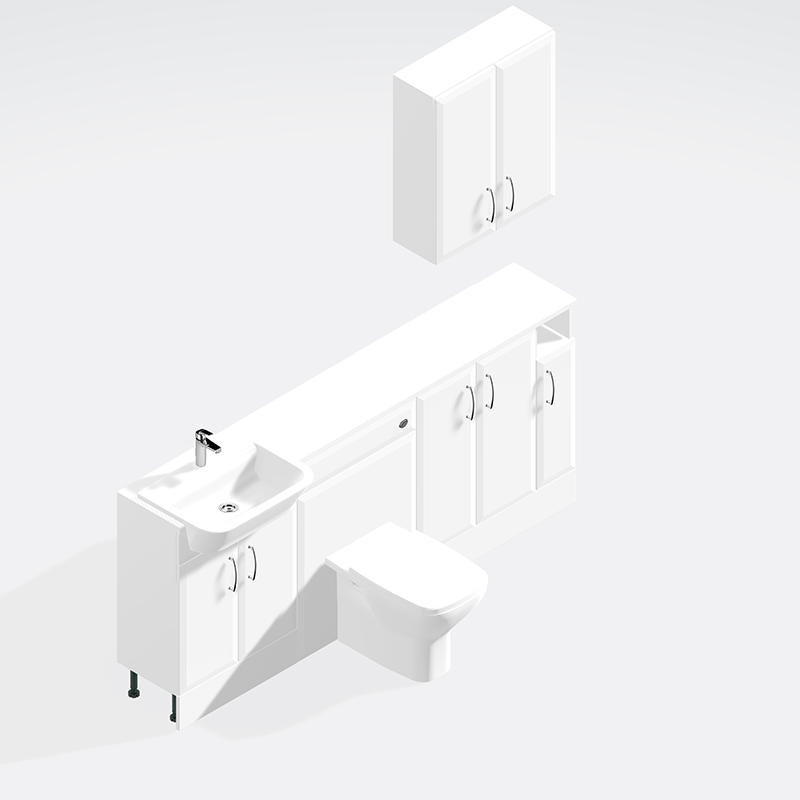 These units can be put into any order you like and not just as per the picture. You get the option of worktops, handles, toilet, basin and cistern.
