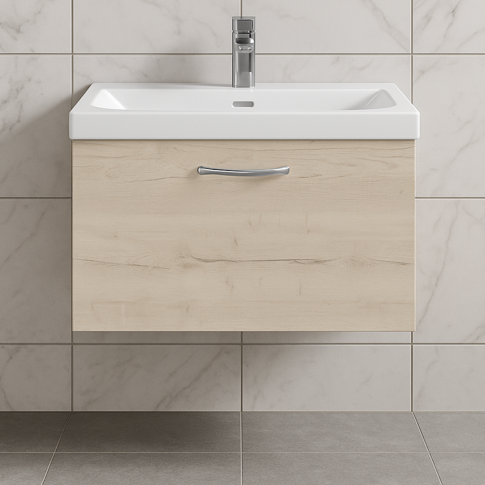 This single drawer wall-hung Vanity Unit with Mid Edge Basin is the perfect