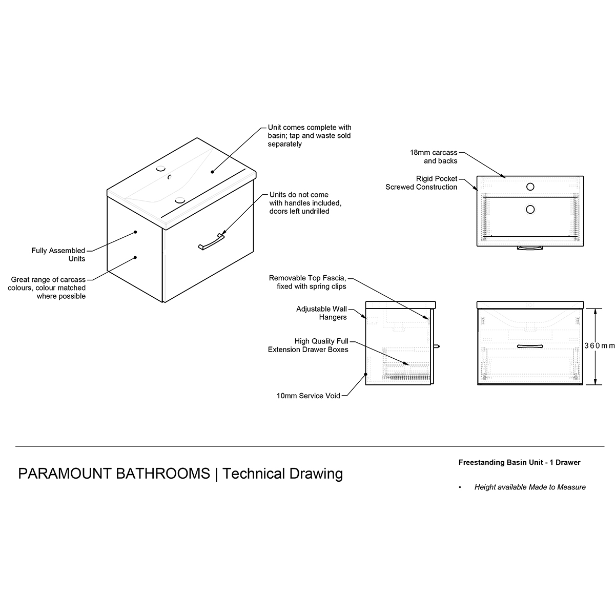 Bathroom 1 Drawer Wall Hung Mid Edge Basin Unit - True Rail
