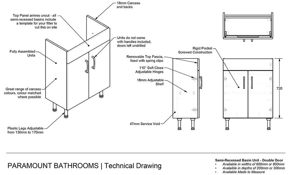 This stylish Bathroom Double Door Semi Recessed Basin Unit is the perfect