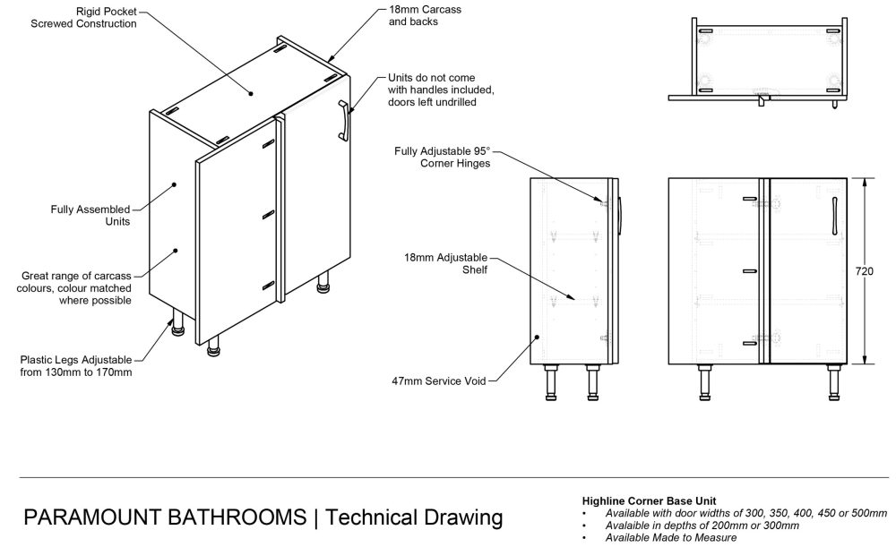 This highline corner base unit comes in a variety of widths from 540mm to