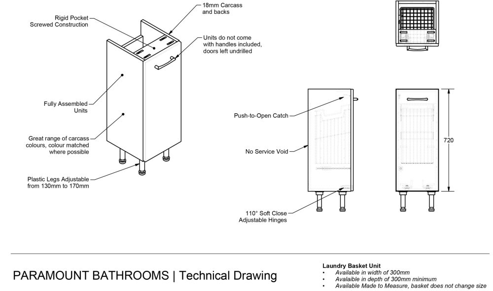 Height:720mm (plus 140mm for the plinth and the height of your