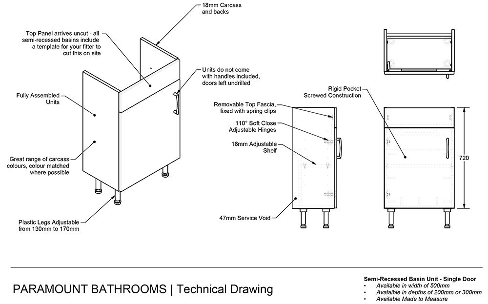 This Bathroom Single Door Semi Recessed Basin Unit is the perfect solution