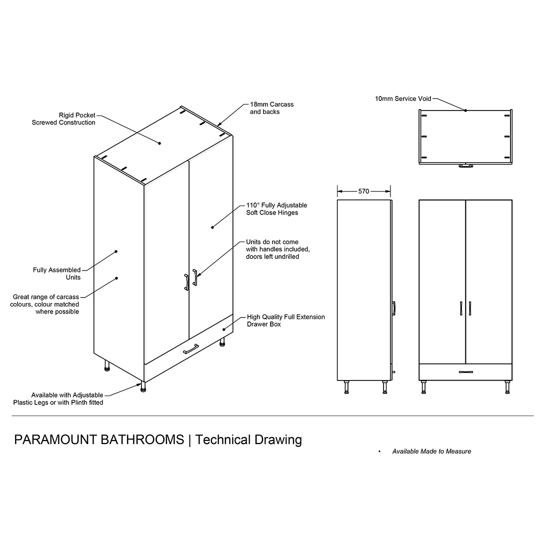 Bedroom Double Wardrobe Solid Door 2 Drawers - Meon