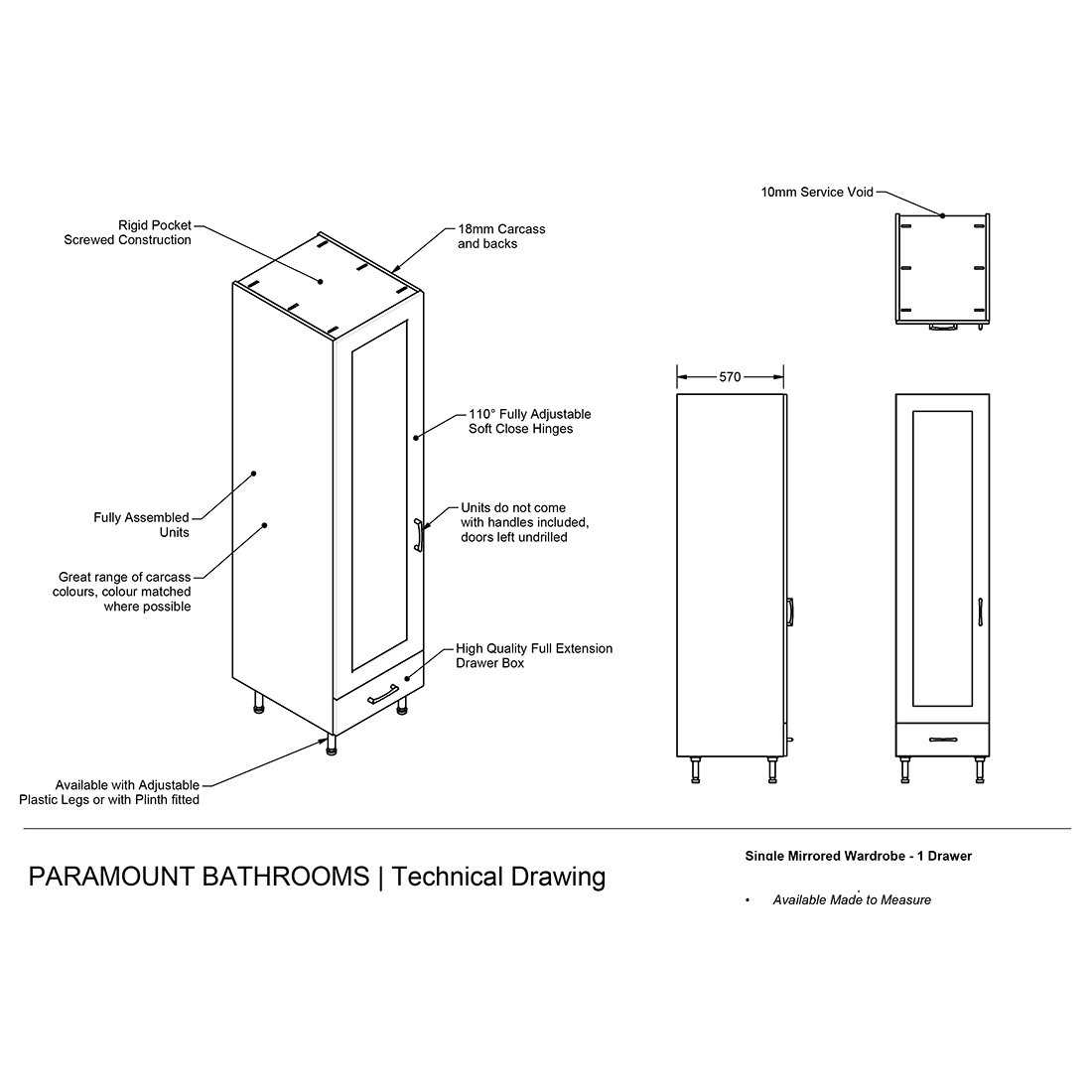 Bedroom Single Wardrobe Mirrored Door - Meon
