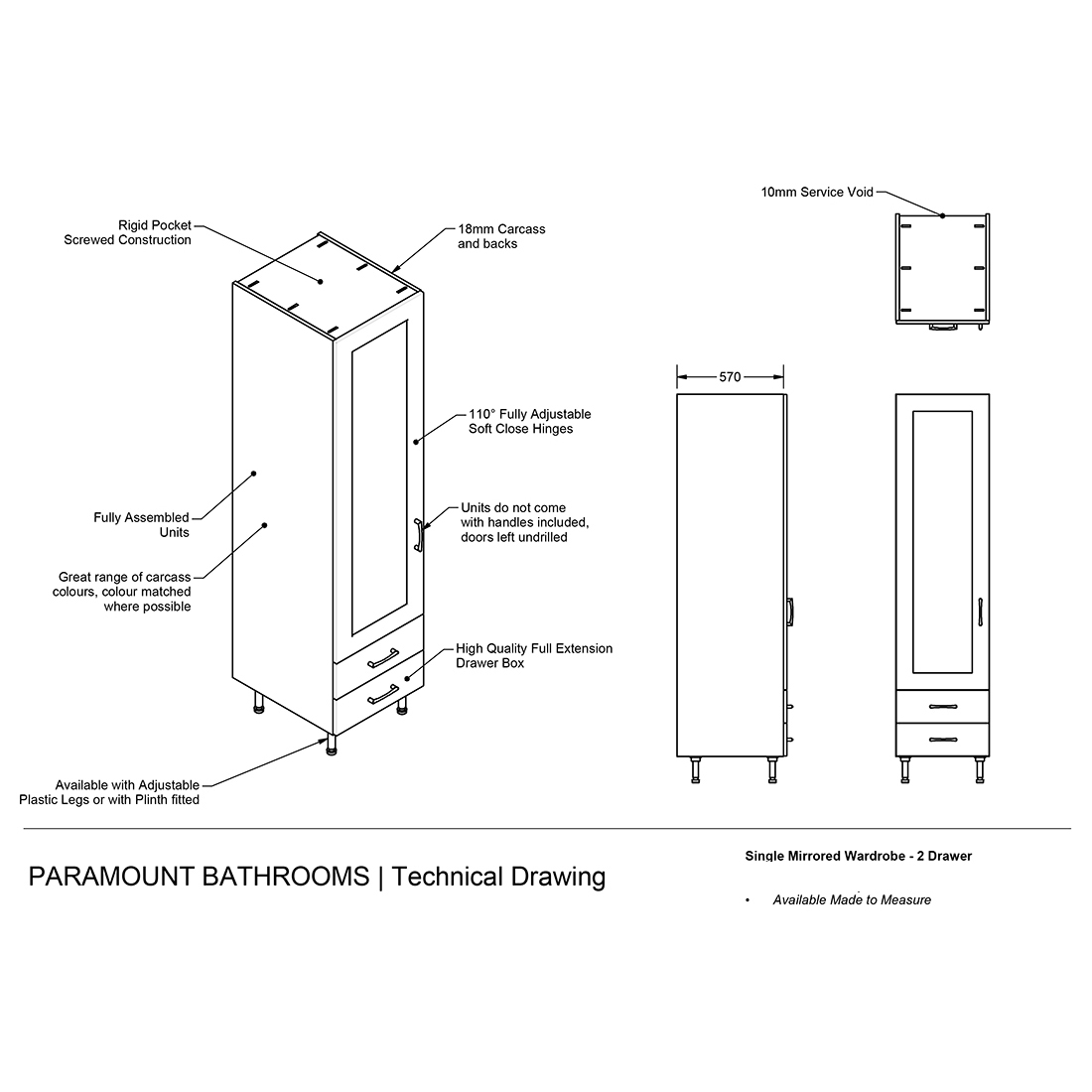 Bedroom Single Wardrobe Mirrored Door - Meon