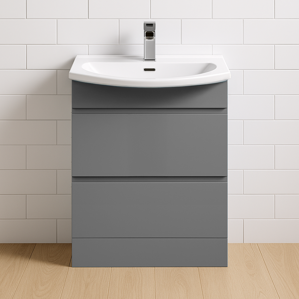 This 2 drawer Floor Standing Vanity Unit with Curved Basin is the perfect