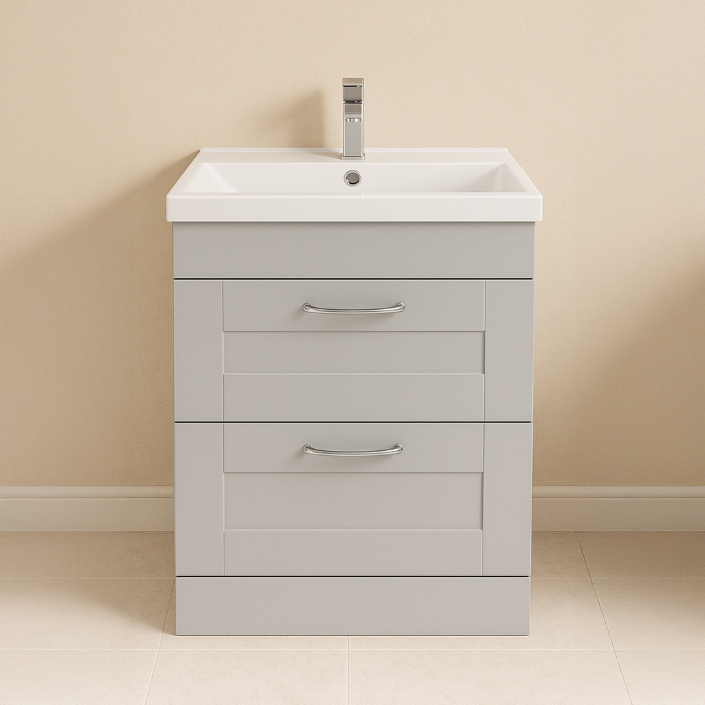 This 2 Drawer Floor Standing Vanity Unit with Mid Edge Basin is the perfect
