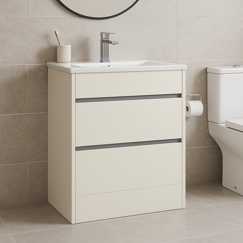 This 2 drawer Floor Standing Vanity Unit with Minimalist Basin is the