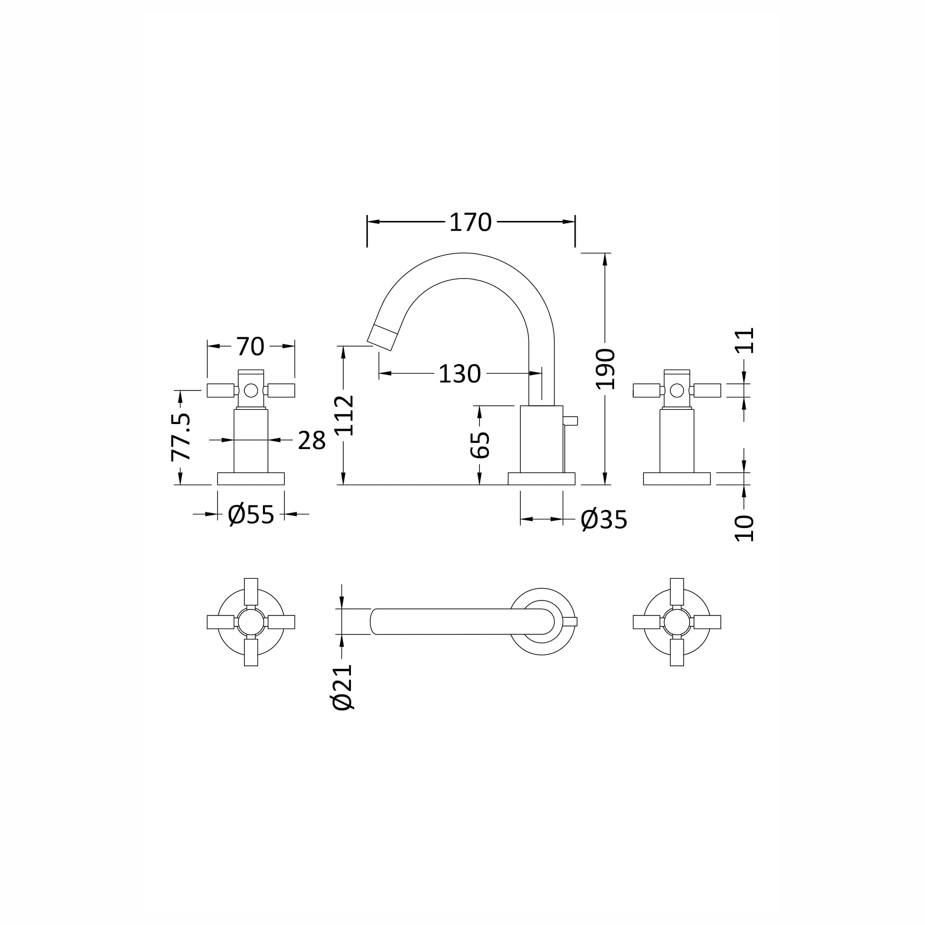 Hudson Reed 3 Tap Hole Basin Mixer – TEX337