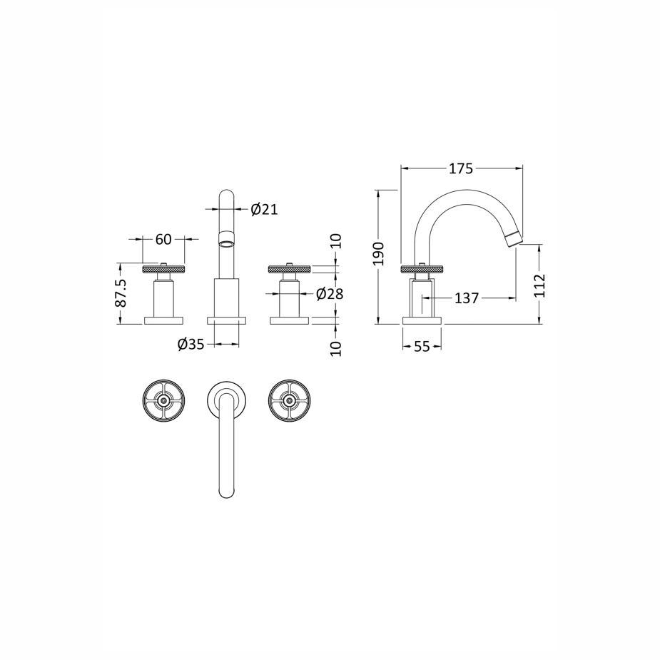 Hudson Reed 3 Tap Hole Basin Mixer – TIW337