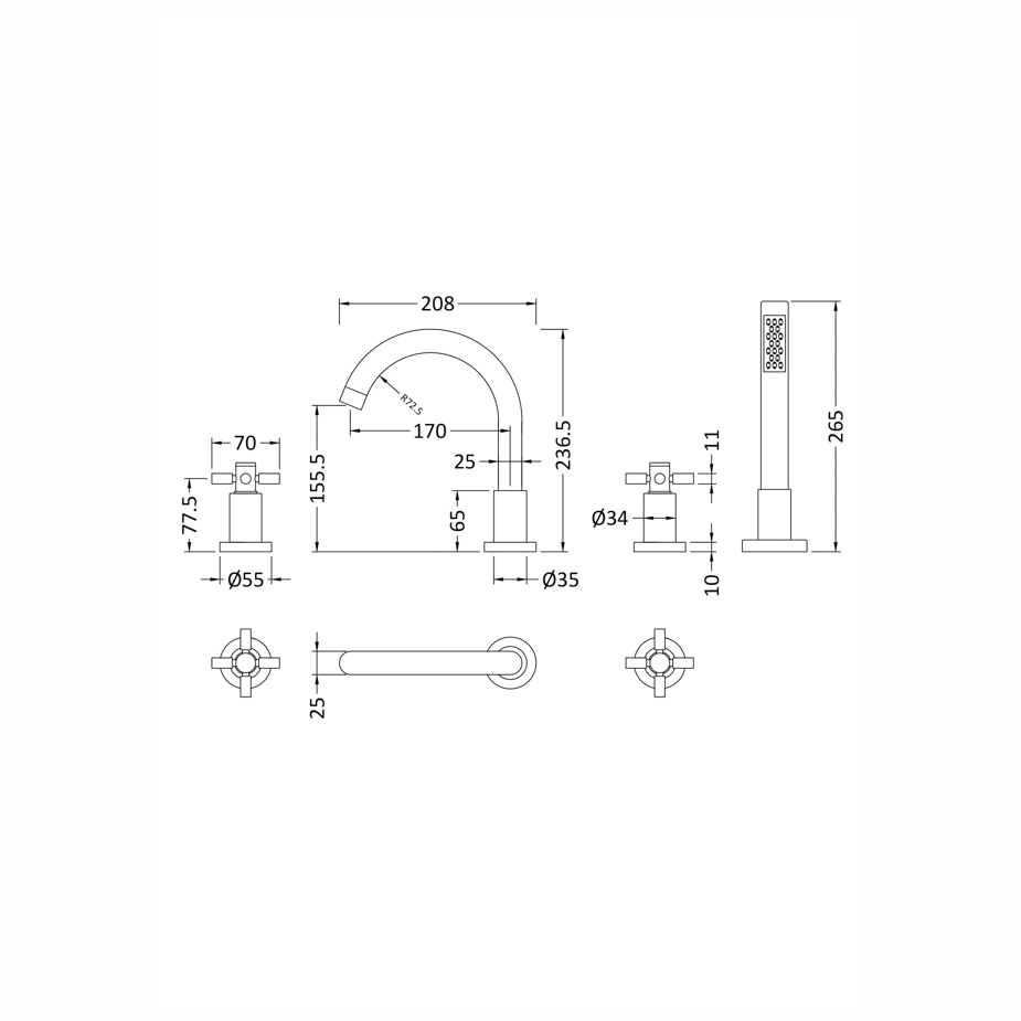 Hudson Reed Tec 4 Tap Hole Bath Mixer – TEX334S