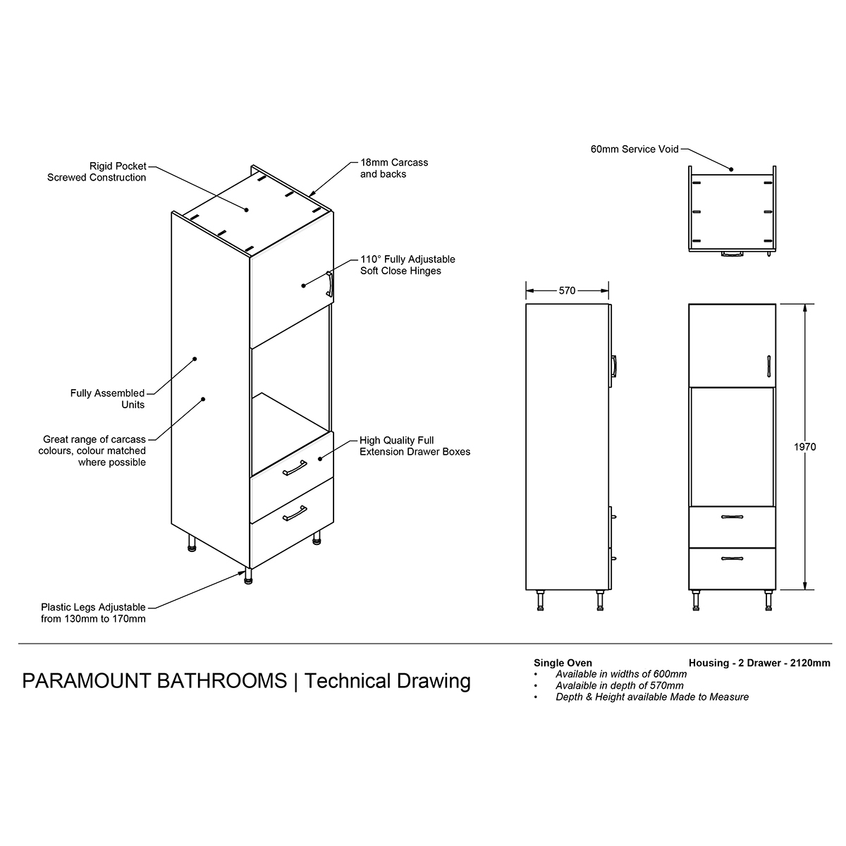 Kitchen Tall Single Oven Housing 2 Drawer 2120mm – Meon