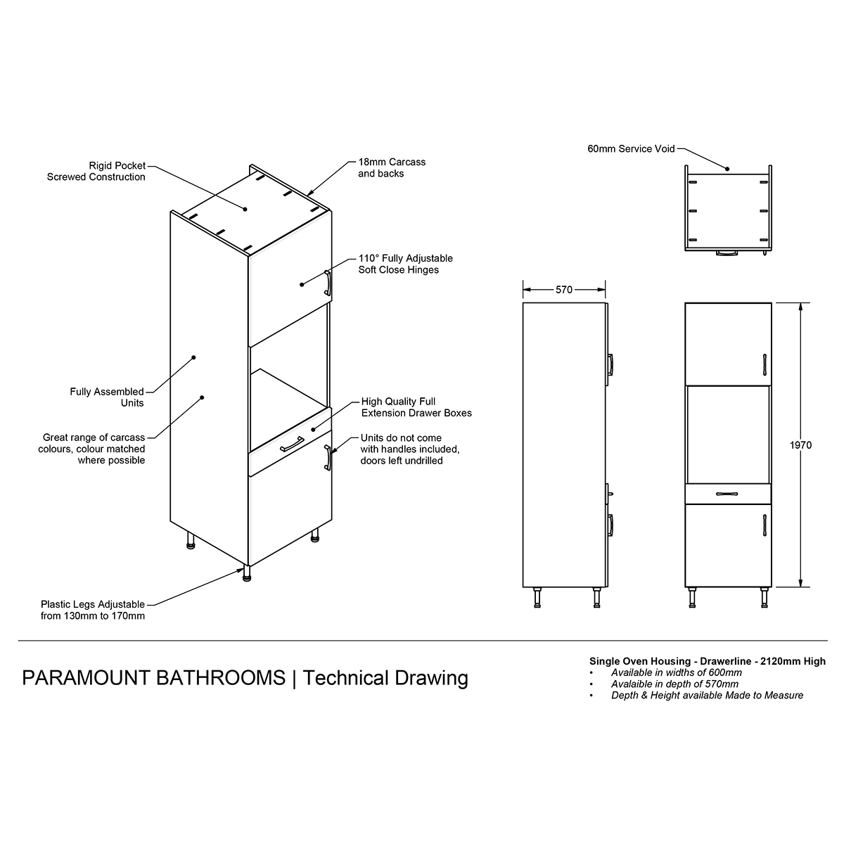 Kitchen Tall Single Oven Housing Drawerline 2120mm – Meon